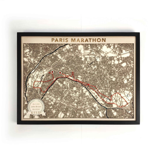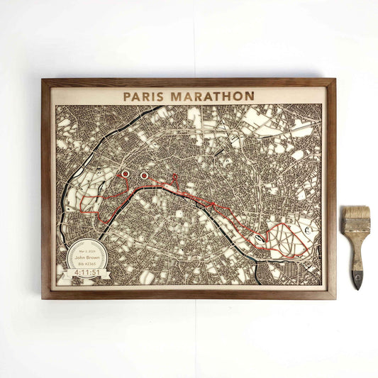Paris Marathon Commemorative Wooden Route Map – Collector's Item