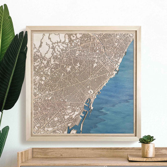 Barcelona Wooden Map