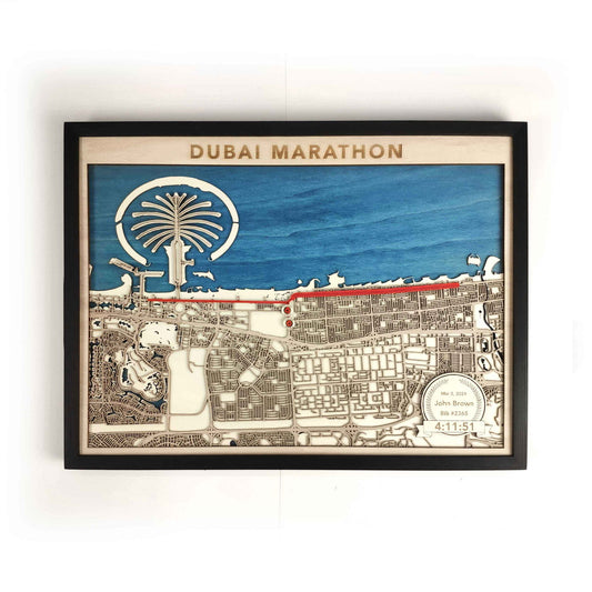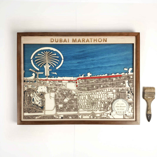 Dubai Marathon Commemorative Wooden Route Map – Collector's Item